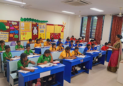 For classes III to V, the curriculum is enriched with Mindspark, a personalized learning tool for Mathematics and English.