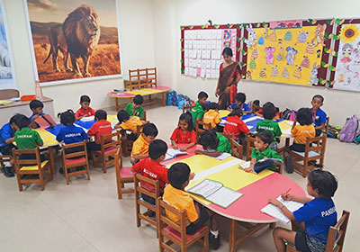 We follow the CBSE curriculum supported by Karadi Path, a structured English language program that builds listening, speaking, reading, and comprehension skills through story-based and immersive learning.